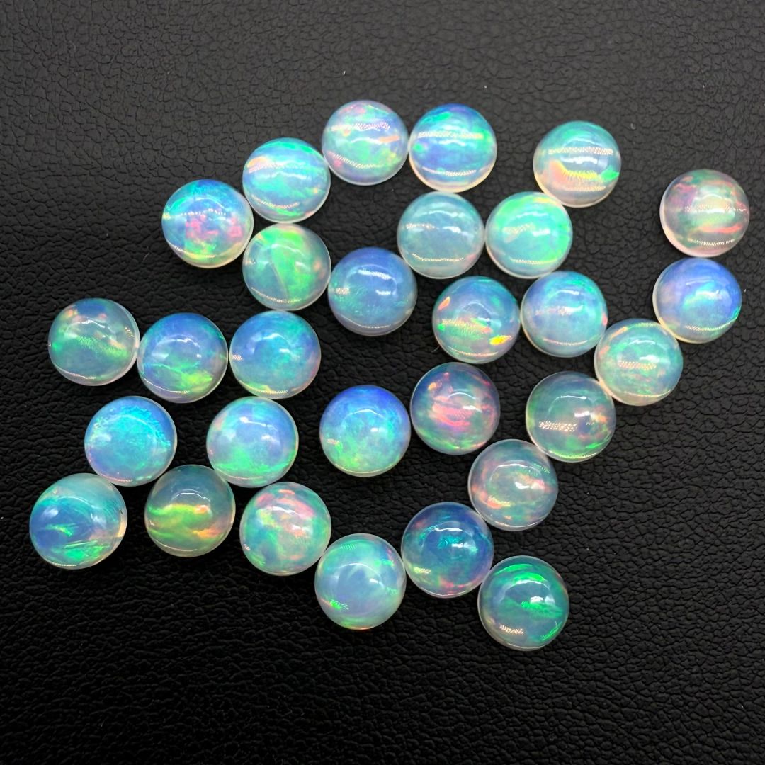 Add luminous fire and charm to your jewelry with this 6mm Round Ethiopian Opal Cabochon, known for its vivid play-of-color that shimmers with every movement. This 100% natural gemstone is perfect for setting in rings, earrings, or pendants, and is especially loved as an October birthstone.