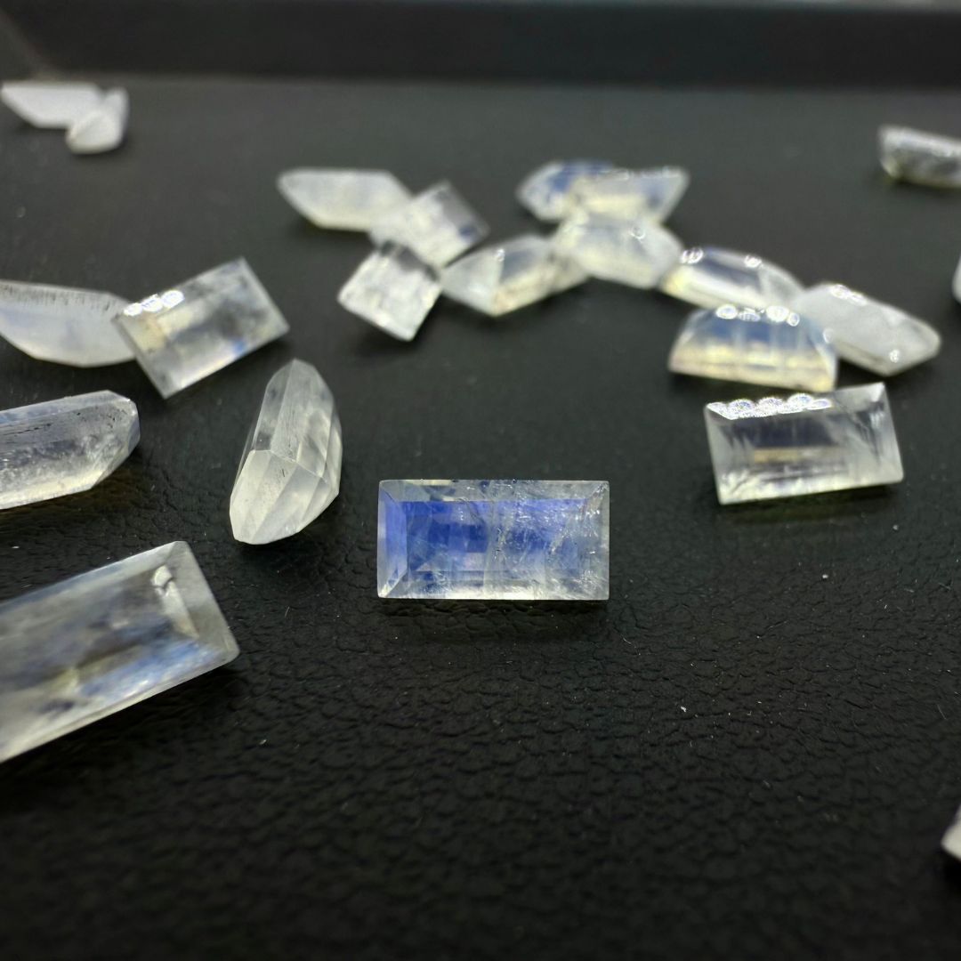 The baguette cut enhances the natural sheen and clarity, creating a mesmerizing play of light across its surface. Ideal for minimalist rings, earrings, or accent stones in luxury designs, these moonstones are a top choice for professional jewelers and designers.