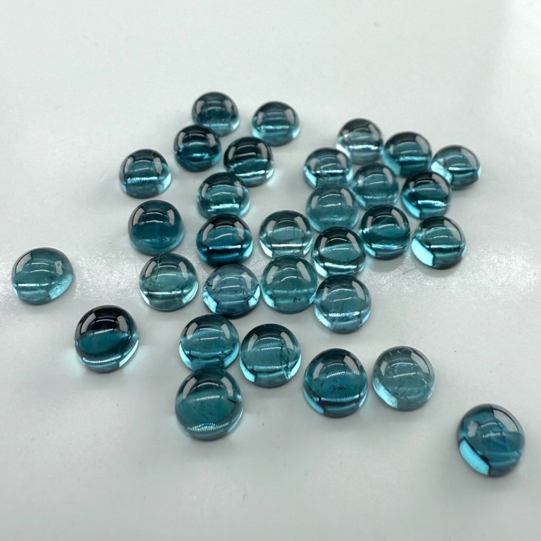 Bring timeless elegance to your designs with our 6mm Round Blue Tourmaline Cabochons — expertly cut and polished to a flawless dome. These cabochons feature rich, natural blue tones and a smooth, luminous finish, making them ideal for custom rings, earrings, pendants, or healing jewelry.